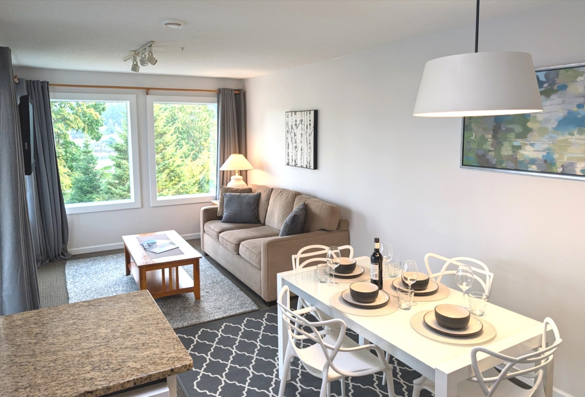 Nestled among towering trees, this charming cottage offers a peaceful retreat with a luxurious queen-sized bed, a fully-equipped kitchen, and a spacious full bath. Vaulted ceilings and abundant skylights flood the space with natural light, creating a bright and airy ambiance. Perfectly situated just minutes from Snug Cove’s amenities and a variety of scenic trail networks, it’s the ideal getaway for relaxation and adventure alike.
