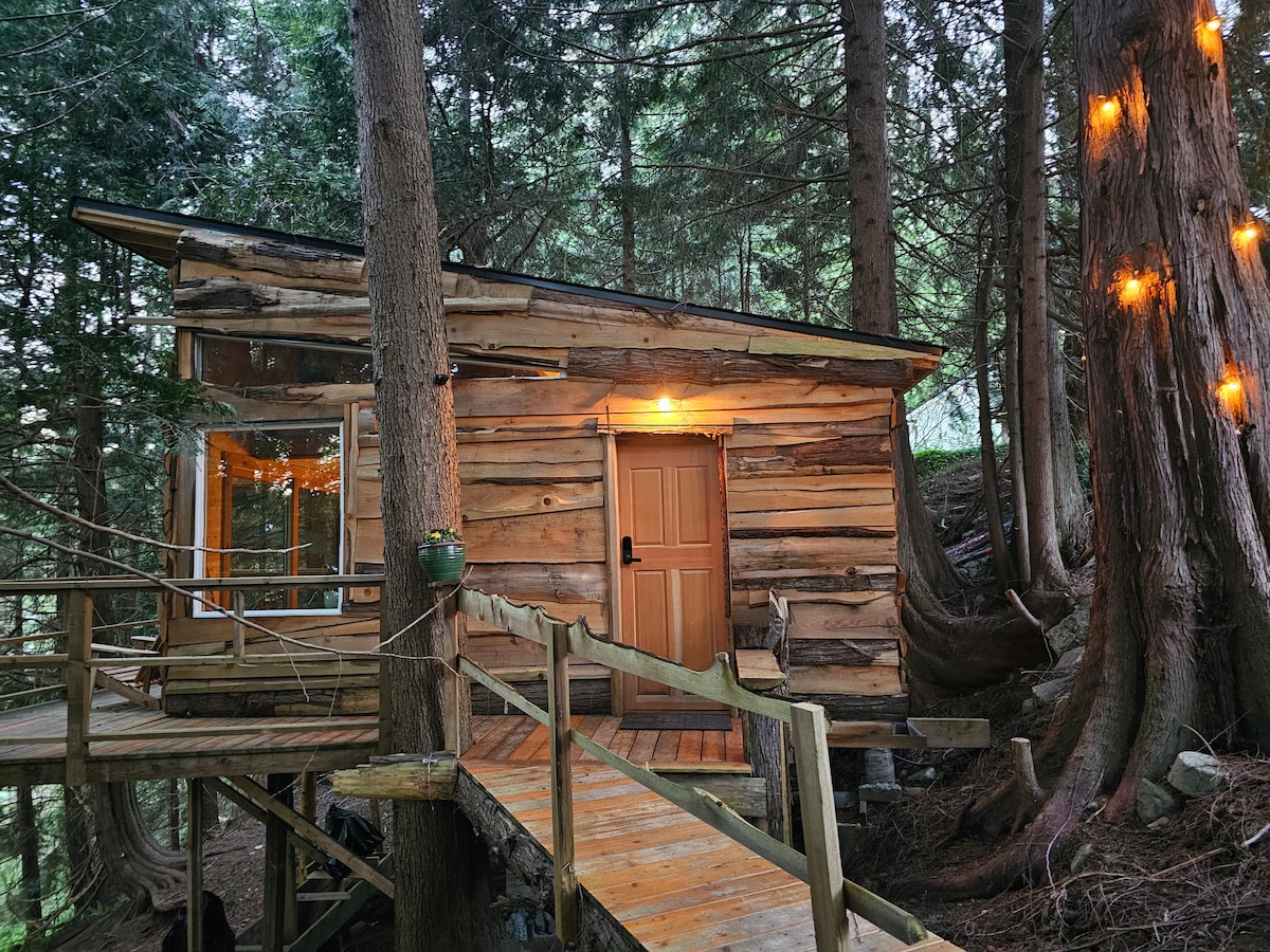 Enjoy a Micro Cabin experience at this centrally located acreage in Upper Gibsons. The Shanty is a Micro Cabin with a bedroom Loft and outdoor trough tub on our 2.5 acre property on Reed Road. This Cabin is a super funky, private and has a laid back feel. Our property is within walking distance to so many amenities: Public Transit, Gibsons Park Plaza and all the Restaurants & Storefronts along the 101 Hwy. Enjoy staying in The Shanty under the Starry Night Sky!