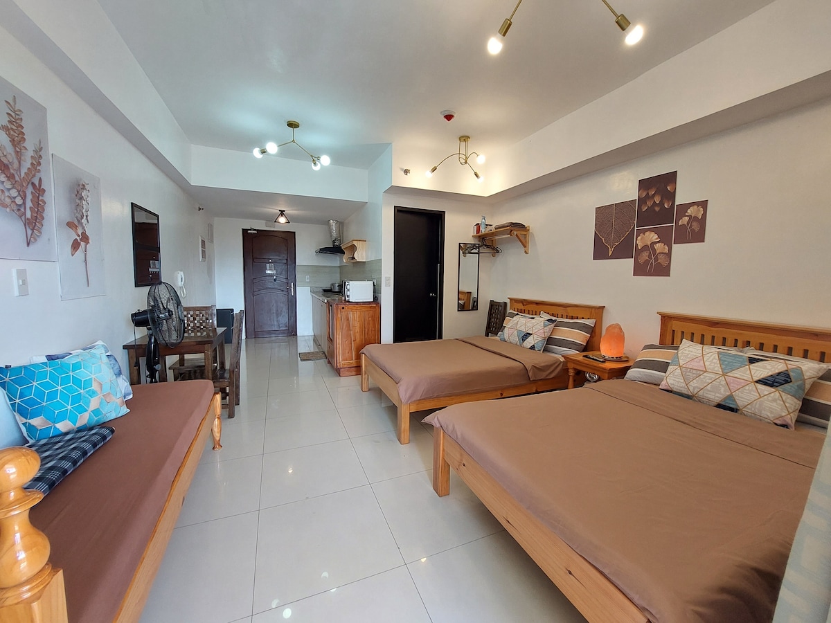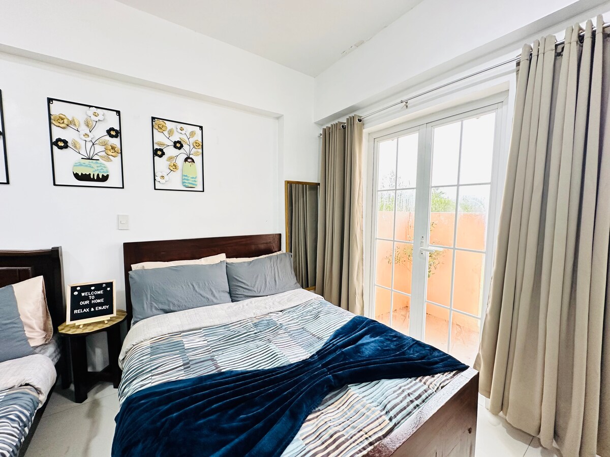 Relax with the whole family at this cozy and peaceful place to stay! Our place has the following features: - Queen size bed with pull out and additional mattress upon request. - Sofa Bed - 55" HD TV with Netflix and YouTube - PLDT stable Wifi up to 70MBps speed. Good for work from home setup - Complete kitchen utensils, electric stove, rice cooker, fridge, microwave, etc. - Modern and clean CR with bidet and hot shower - Parking space is P300 per night as per condo rate. - Pet Friendly!