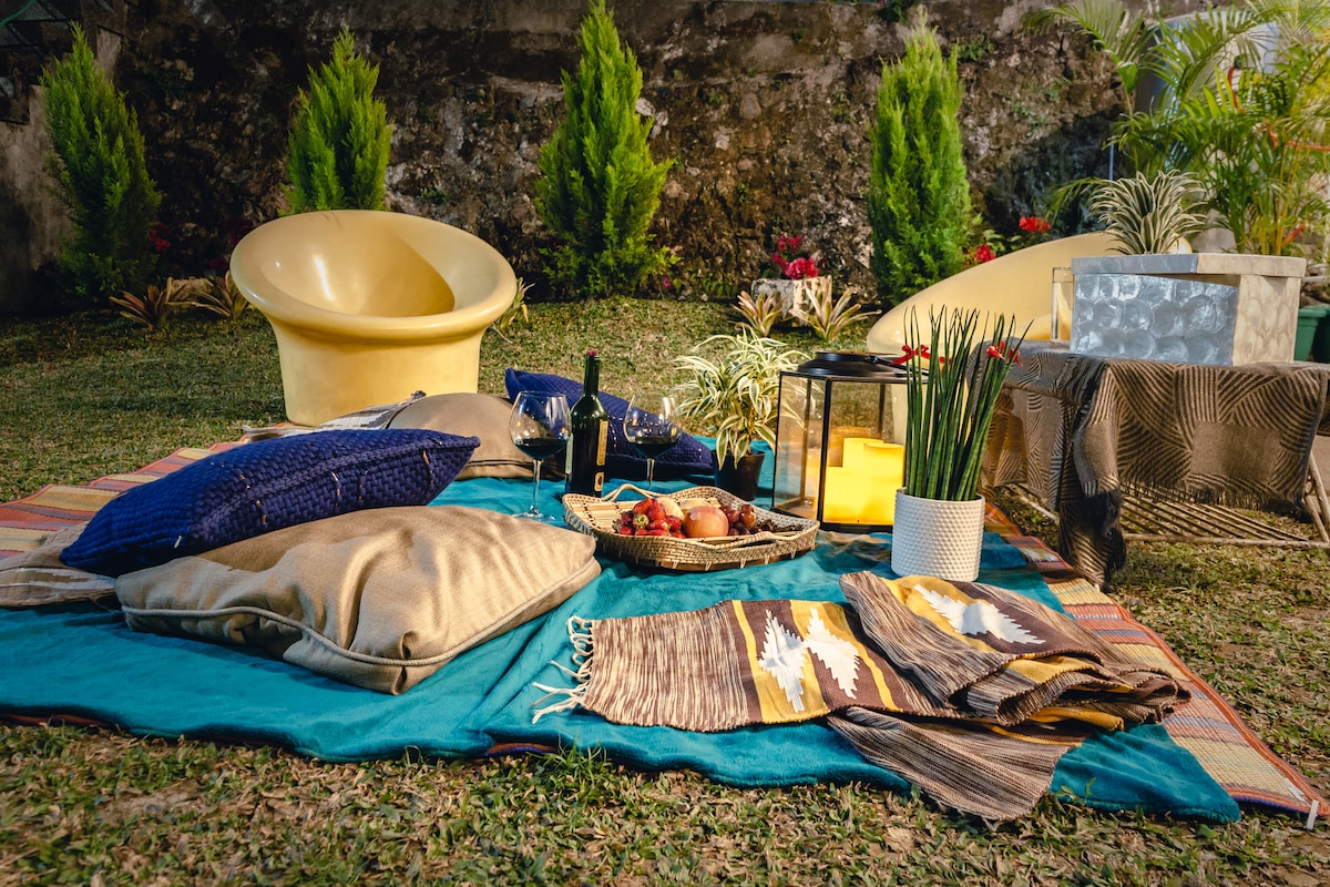 Enjoy mountain views and crisp fresh air in this cozy, stylish and charming home 10 minutes from restaurants and attractions such as Camp John Hay, Mines View Park, The Mansion House and others. Perfect for families and groups of friends, this pet-friendly and wheelchair-accessible home offers an indoor fireplace, 2 outdoor fire pits, 4 bedrooms with bathrooms, a full kitchen, alfresco dining, front and back yards; cableTV, karaoke machine, & fast internet for those who wish to work from home.