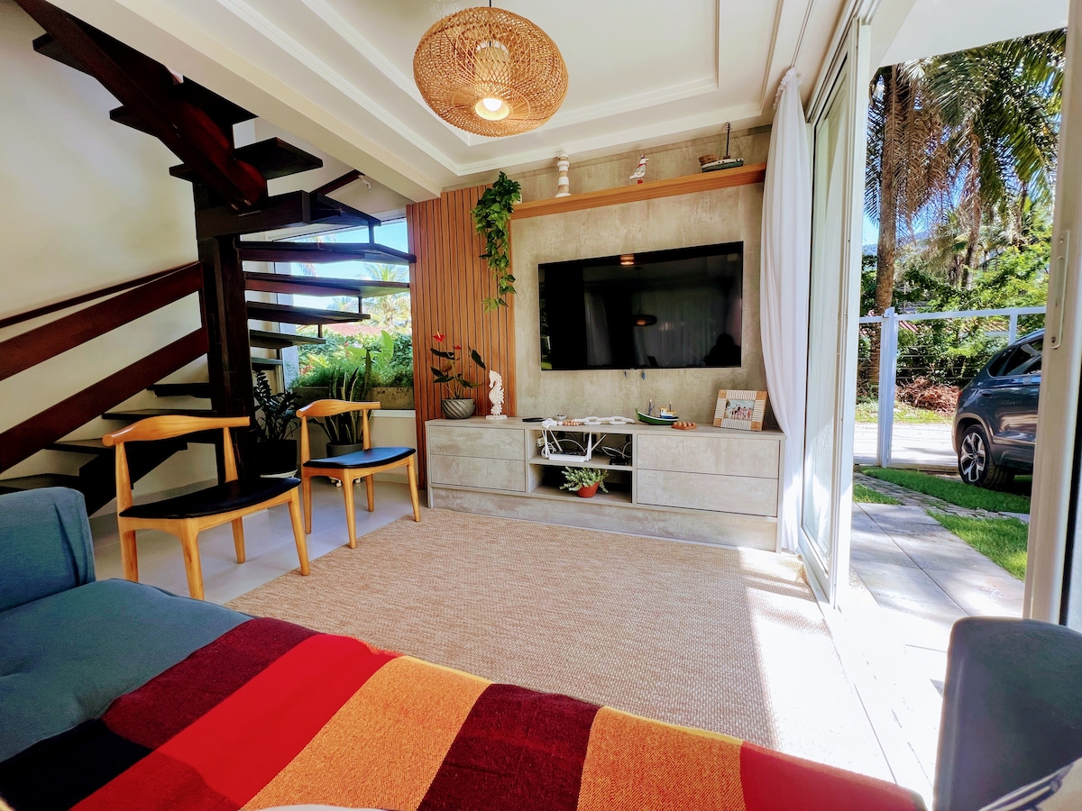 Essa casa cheia de estilo é ideal para quem busca conforto, aconchego e belas praias. Sua temática é indígena (com certeza vão ver muitos índios pela casa). A localização é outro ponto que chama a atenção, pois esta situada em um condomínio com apenas 10 casas e em uma região extremamente privilegiada que facilita o acesso a diversas praias, trilhas, cachoeiras, pontos turísticos, passeio de barco para ilhas e ótimos bares/restaurantes.
