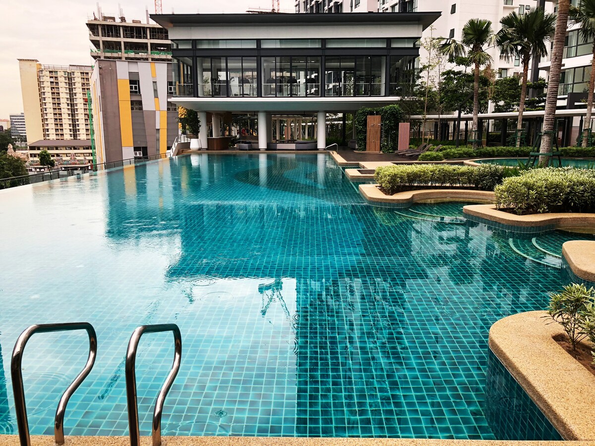 Whether you are looking for a hidden gem to re-energize or a Get Away to Heal in the city, this is your ideal spot! - Poolside with 5-star hotel ambience facing KL city view as your backdrop - Nearest MRT & LRT station is Chan Sow Lin station. TRAVEL TO THE HEART OF KL (Bukit Bintang) in just 2 stops. -Plenty of activities and spots for social media worthy photos in the building. - Central location that makes it super convenient for bar hopping, city-venturing