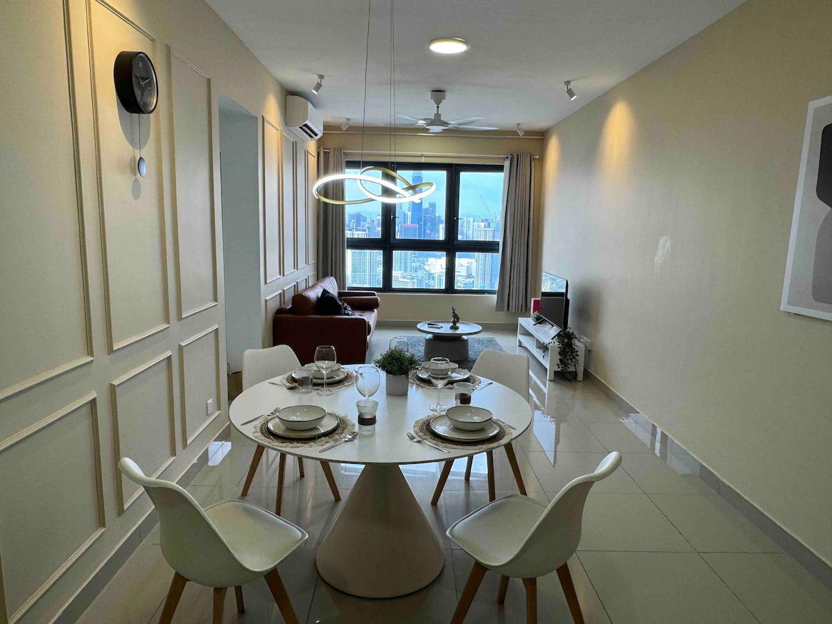 Why stay at Contemporary Suite at Lucentia Residence - the best views of KL - beautifully decorated with a fun spirit - centrally located - near public trans - fast wifi - 2 TVs with Netflix, Apple TV, Prime Video - 2 gorgeous pools - family friendly with baby crib & high chair - gym, pool table,BBQ pits, piano - garage parking - sleeps 3 max 5 - LalaPort Shopping Mall & the WOW entertainment street are attached - grocery, drug store, and many restaurants are attached - movie theatre GSC