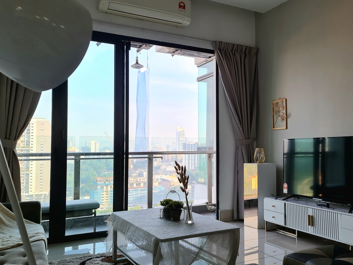 Why stay at Contemporary Suite at Lucentia Residence - the best views of KL - beautifully decorated with a fun spirit - centrally located - near public trans - fast wifi - 2 TVs with Netflix, Apple TV, Prime Video - 2 gorgeous pools - family friendly with baby crib & high chair - gym, pool table,BBQ pits, piano - garage parking - sleeps 3 max 5 - LalaPort Shopping Mall & the WOW entertainment street are attached - grocery, drug store, and many restaurants are attached - movie theatre GSC