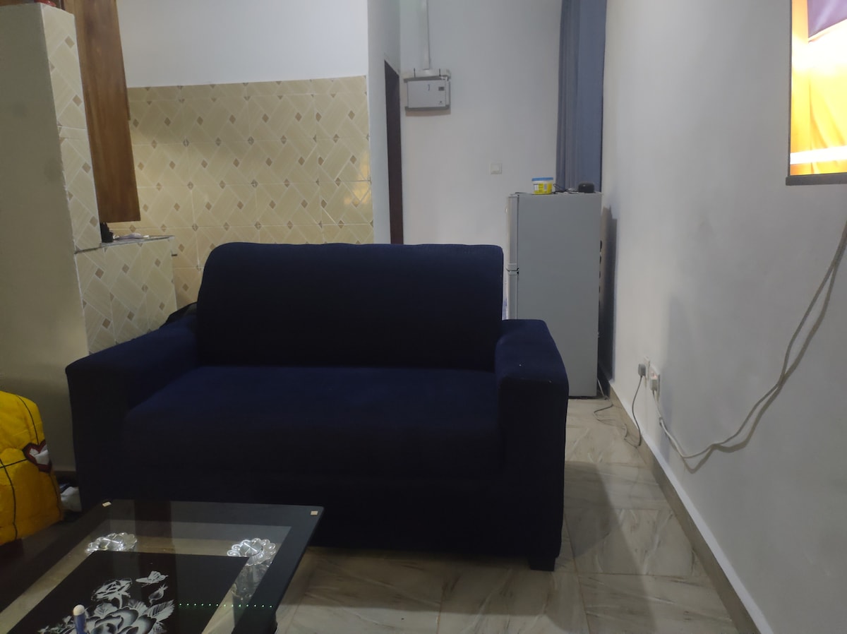 Enjoy a secure, well-gated apartment in central Sunyani, featuring a spacious air-conditioned living room, Netflix, free Wi-Fi, a fully furnished kitchen, and a cozy bedroom with its own AC—perfect for both business and leisure stays.