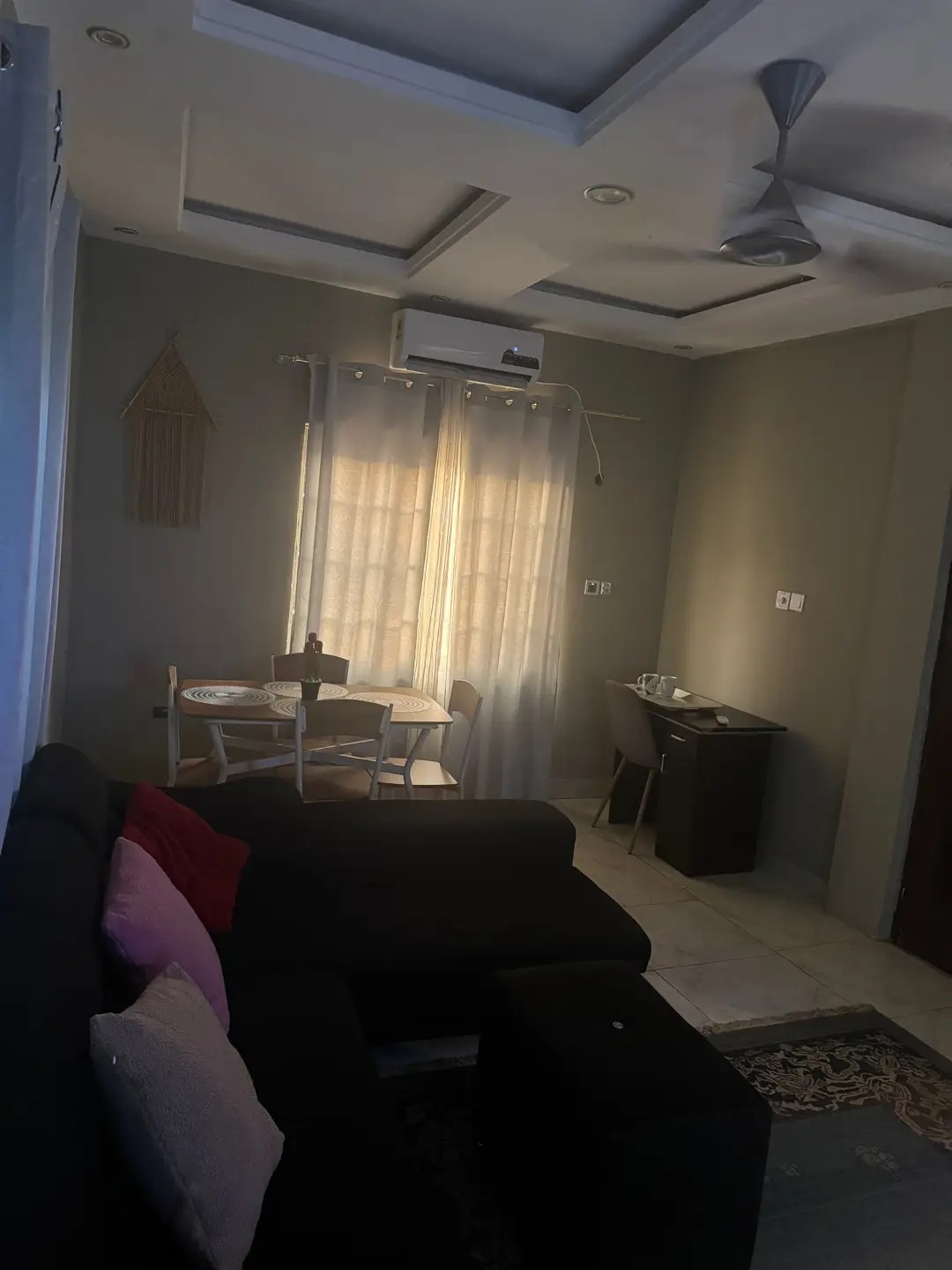 A serene environment with coconut trees that comes with a beautiful warm swimming pool.24hrs BAR service that serves varieties. At the heart of Sunyani Enjoy the stylish Apartment and many amenities that comes with; ~Free Parking ~High Speed wi-Fi ~Smart Tv with Cable ~Fully Equipped Kitchen ~Dinning area ~Cozy Bedroom ~Office Desk ~Fresh Lines & Towels ~Washing machine/Drying rack ~Outdoor Shower ~Bathroom Toiletries ~Swimming Pool & Bar ~House Keeper Extremely Safe Neighborhood