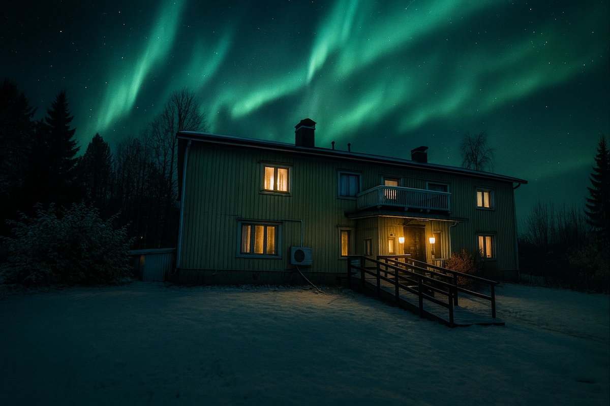 Not a five-star cottage, but an authentic log cabin beneath five million stars, on the historic ancestral lands of the Lapland people. The cabin is for those who appreciate nature and wilderness conditions and seek a genuine connection with nature in an untouched wilderness free from noise pollution or other distractions—a unique haven of tranquility where you are guaranteed to wake up to the songs of birds and the sounds of nature, surrounded by the majestic wilderness of the boreal forest.