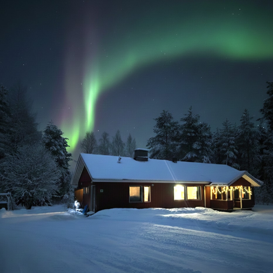 Cozy cabin facing the lake, near the trails of Hossa-Kylmäluoma National Park. The cabin is located on our property, but you have your own private access and independence! You can meet our five affectionate huskies if you wish! Included: - Private sauna (and equipment for making a hole in the ice) - A private outdoor area with a campfire for your evenings under the stars or the northern lights - 1 canoe - A smoker - Equipment for ice fishing and summer fishing - Snowshoes