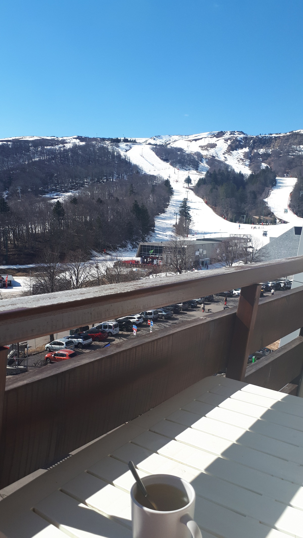 Je propose un joli appartement pour 4/5 personnes (pour 4 personnes uniquement l'hiver), centre station, exposé plein sud avec belle vue sur les Monts du Cantal, le lac des Hermines et les pistes de ski. L'appartement dispose d'un grand balcon avec espace repas et transat. L'appartement est à proximité immédiate de toutes commodités : parkings, restaurants, boutiques, boulangeries, piscine, lac, plage, aire de jeux pour enfant, téléphérique de la Perdrix, ...