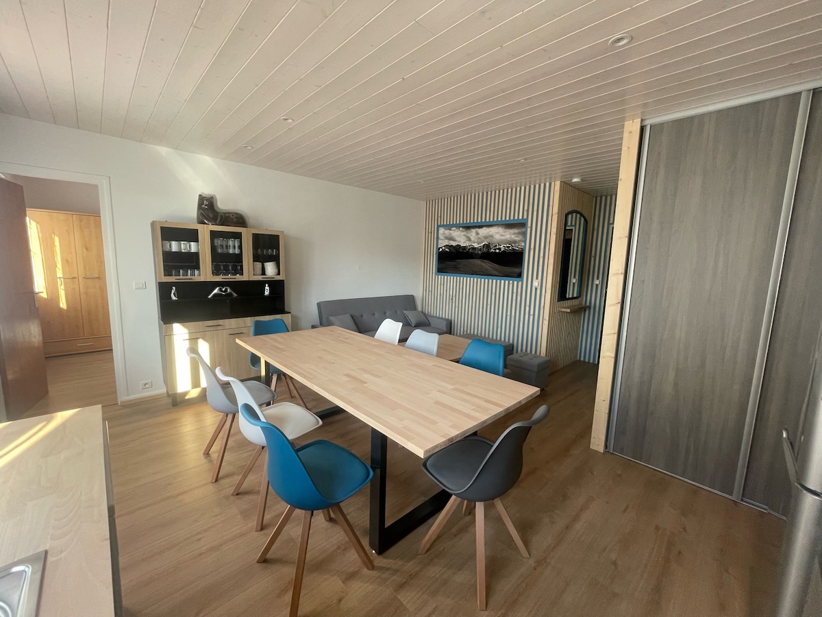 Appartement très "déco" été comme hiver de 65m2 en rez de jardin dans un chalet de montagne. Idéal pour 6 personnes (8 avec canapé-lit). Navette devant la porte. Pistes à moins de 100m. Terrasse et vue dégagée, accès au jardin privé. Parking privatif pour 3 voitures. Agent d'accueil et d'entretien sur place. Les draps et le linge de maison sont inclus dans nos tarifs. Produits de première nécessité fournis, WIFI, système audio Bluetooth, barbecue. Prestation de ménage forfaitaire incluse.