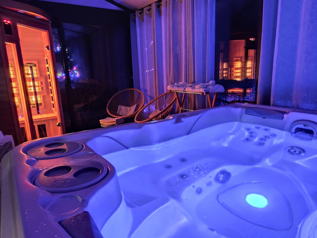 Au pied de la chaîne des Puys venez vous ressourcer en duo dans notre gîte où règne la sérénité. Idéalement situé sur le GR 30, à 20 kms de Clermont Ferrand et 25 km du Mont Dore, ce gîte restauré dans un four à pain allie nature, repos, bien être et confort. Grande pièce voûtée et lumineuse. Véranda avec superbe spa et sauna infrarouge privatifs, espace nuit étoilée, salle de bain voûtée. Terrasse, jardin privatif équipé sur parc de 4 hectares à l'abri des regards vous sont dédiés.