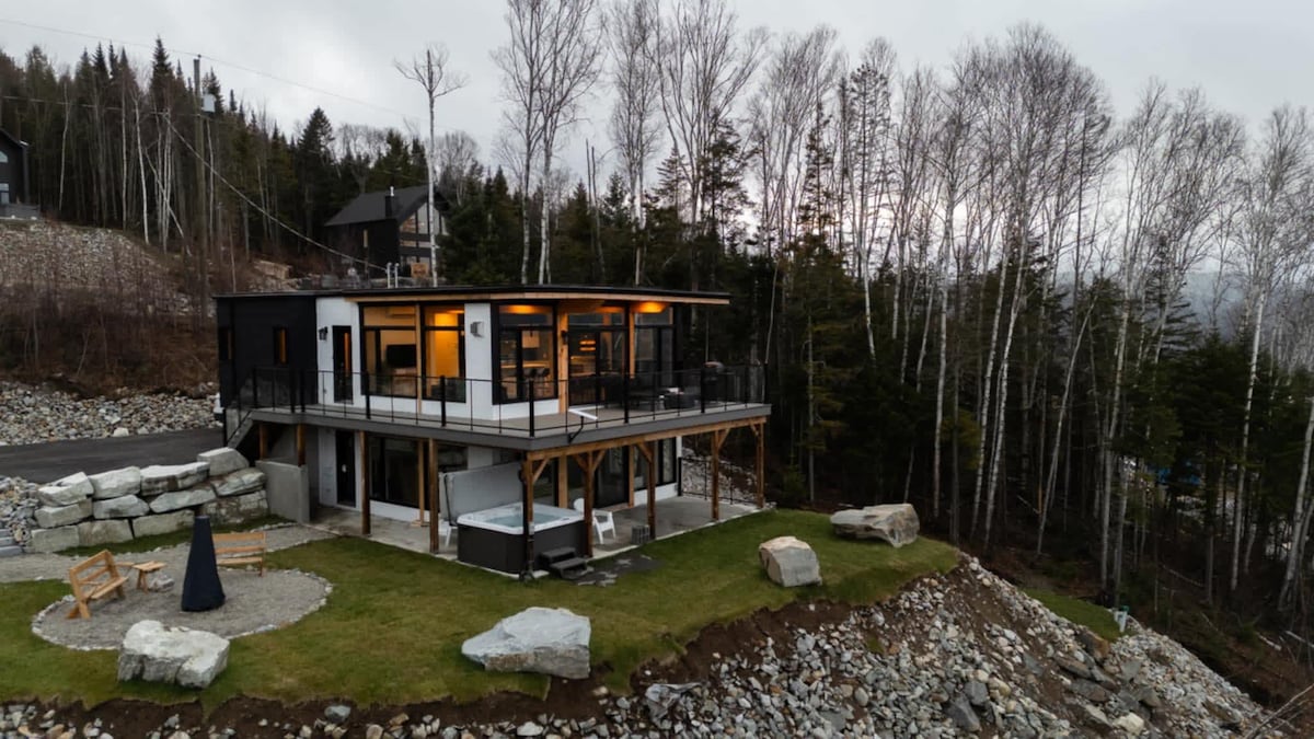 Escape to a new luxury waterfront chalet on the L’Assomption River. This 3,200 sq ft home offers stunning mountain views, an 8-person hot tub, and game room. Comfortably sleeping 9 guests, it's the perfect intimate retreat just 1 hour from Montreal and minutes from skiing. Enjoy superior quality, handcrafted details, and direct river access for an unforgettable stay.