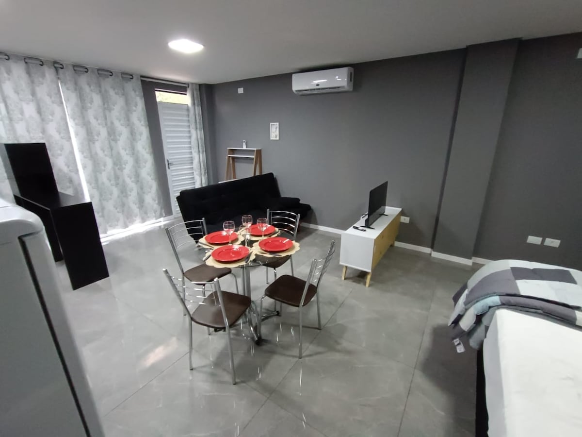Welcome to our accommodation! Our best features are: _Confortable Studio fully equipped, in a nice neighborhood, very close to the center and next to the Cataratas Avenue. _Optic Fiber Internet up to 500mb w/ WiFi 6 _NEW Air Conditioning LG DUAL INVERTER VOICE _Smart TV FULL HD w/ Dolby Atmos _Quality Hotel QUEEN Bed _New bed/bath sets _Shopping, Restaurants, Supermarket and Pharmacies just minutes away _Area for relax _Transfer IN included for stays longer than 15 days