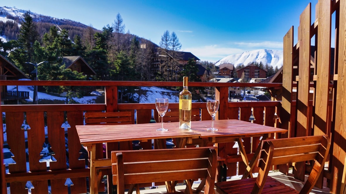 T2 skis aux pieds à Superdévoluy, terrasse plein sud offrant une vue panoramique exceptionnelle sur le domaine skiable et le Pic de Bure. Depuis la terrasse, profitez du soleil et d’un panorama dégagé sur les pistes, idéal pour se détendre après le ski. Départ et retour skis aux pieds, commerces, restaurants et activités accessibles à pied. Accès direct à la galerie commerciale du Bois d’Aurouze par l’intérieur de l’immeuble, pour des vacances sans contrainte et sans voiture, été comme hiver.