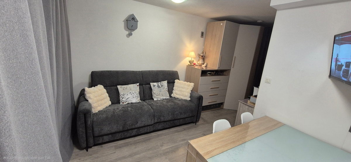 Ce studio se situe au pied des pistes, avec toutes commodités pour passer un agréable séjour. Idéal pour 2 à 4 personnes Séjour avec 1 lit 2 personnes en mezzanine et canapé lit. Salle d'eau avec douche. Entièrement équipé, four, plaques chauffantes, micro-ondes, TV etc Connexion WIFI. L'immeuble est au coeur de la station, vous y trouverez resto, supermarché, magasin divers ainsi que laverie, discothèque, bowling, cinéma. ⚠️ Noël/jr de l’an+ Février location à la semaine seulement.