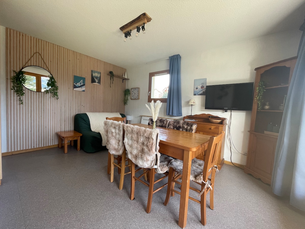 Studio dans résidence avec ascenseur Le bois d aurouze Petit balcon vue montagne et vallée Wifi et parking gratuit. Hall d'entrée avec penderie , étagères casier a ski. Salon avec tv , table modulable +4 chaises qui peuvent se ranger dedans. Canapé convertible lit 140x190, lit mezanine 140x190 , commode 3 tiroirs +couvertures +oreillers fournis. Salle d'eau avec sèche serviettes, sèche cheveux. Prévoir : draps, housses de couettes et d'oreillers. Torchons , serviettes de toilettes