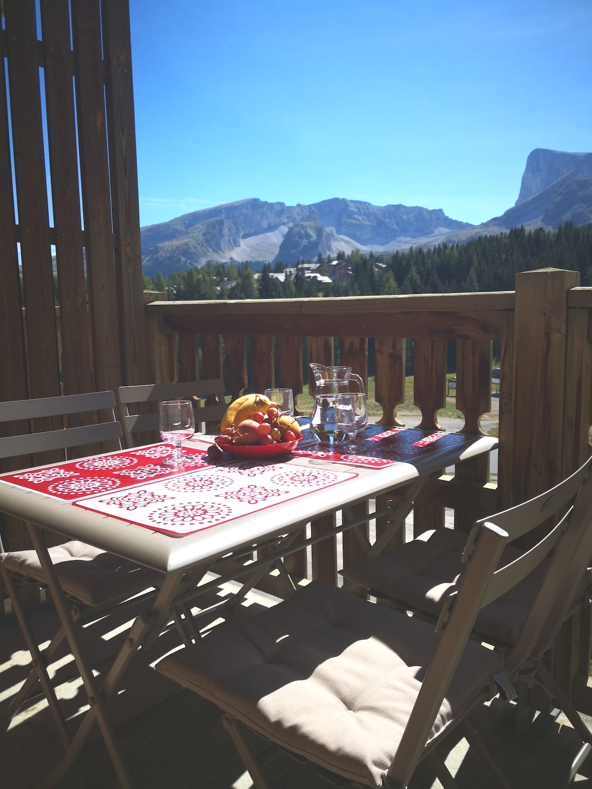 T2 skis aux pieds à Superdévoluy, terrasse plein sud offrant une vue panoramique exceptionnelle sur le domaine skiable et le Pic de Bure. Depuis la terrasse, profitez du soleil et d’un panorama dégagé sur les pistes, idéal pour se détendre après le ski. Départ et retour skis aux pieds, commerces, restaurants et activités accessibles à pied. Accès direct à la galerie commerciale du Bois d’Aurouze par l’intérieur de l’immeuble, pour des vacances sans contrainte et sans voiture, été comme hiver.