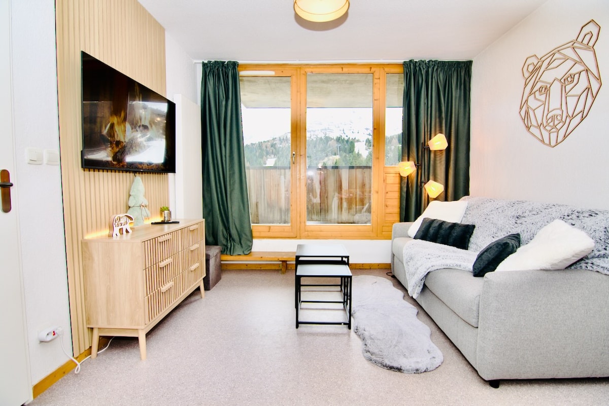 Confort, vue et emplacement idéal au cœur de la station. Bienvenue dans notre appartement "Le Repaire des 36 ours", fraîchement rénové. Niché au 2ème étage, le balcon orienté sud-est vous permettra d’admirer la vue sur les pistes et la montagne en toute tranquillité, que ce soit pour un café du matin ou une pause après ski.. Ici, tout se fait à pieds : accès aux pistes, commerces, piscine, restaurants… Vous posez la voiture, et vous profitez. Fibre très haut débit, TV, jeux à disposition