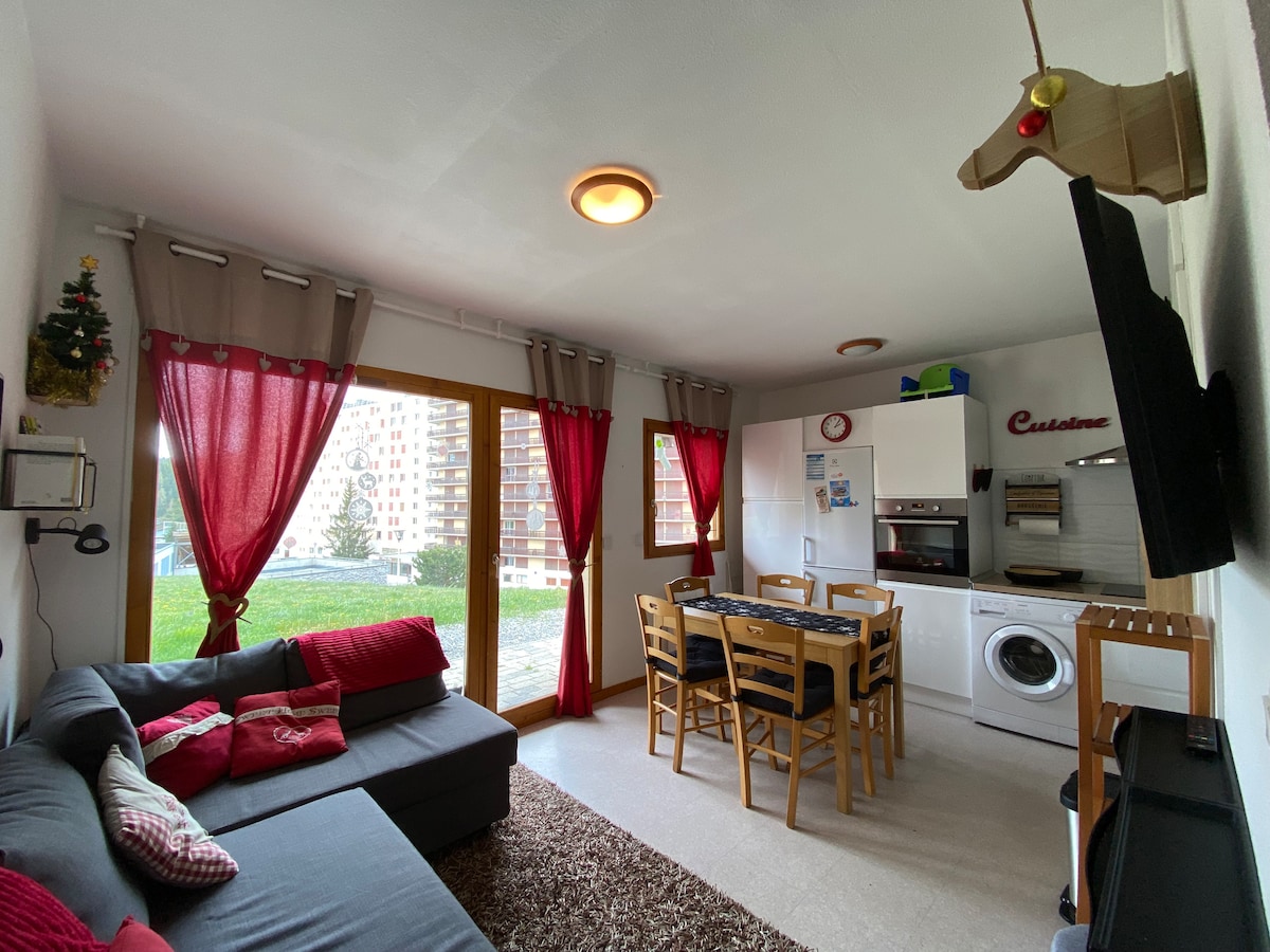Cocon chaleureux au pied des pistes, avec terrasse plein sud et vue imprenable sur les montagnes. Ici, on chausse les skis depuis la porte, on partage une fondue le soir et on savoure le calme de la nature. Ambiance montagne, cuisine équipée, TV connectée, parking couvert, animaux bienvenus… En accès direct depuis l’immeuble : galerie marchande avec restos, bars, location ski/VTT, supermarchés. Un lieu simple et unique pour se ressourcer, été comme hiver.