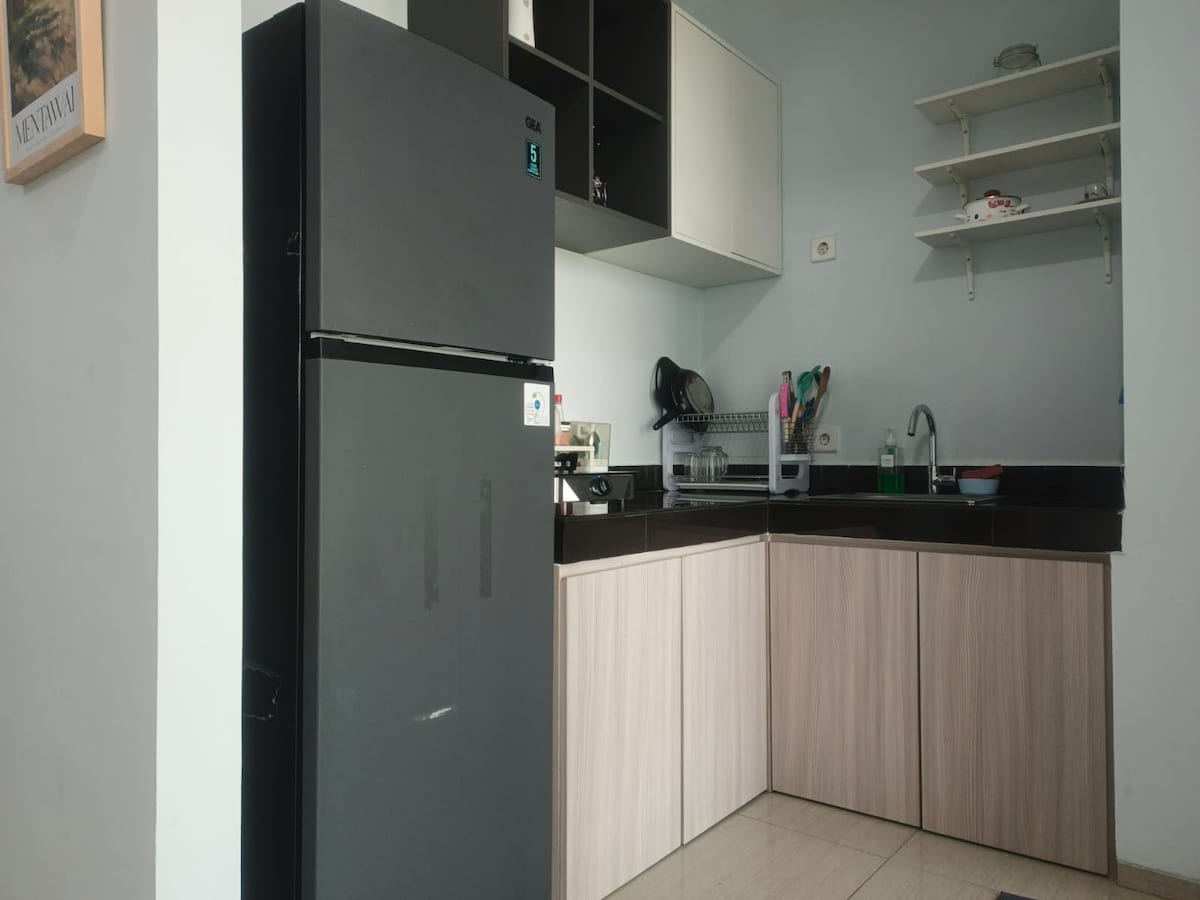 🏙️ 2BR Compact Apartment | 69m² | 9th Floor 🌇 City View 📍 1 min to Lippo Mall | 5 min walk to UPH 🛏️ Room 1: Queen Bed 160×200 🛏️ Room 2: Single Bed 120×200 Office desk, wardrobe & study lamp 🍳 Kitchen: Fridge E-stove Microwave Rice Cooker Water Boiler Water Dispenser 🏠 Living Room: 43” Smart TV Dining Set Coffee Table ✨ Extras: Washing Machine 2 Central AC Water Heater Extra Foldable Bed Baby Chair Air Purifier Fully furnished & move-in ready!
