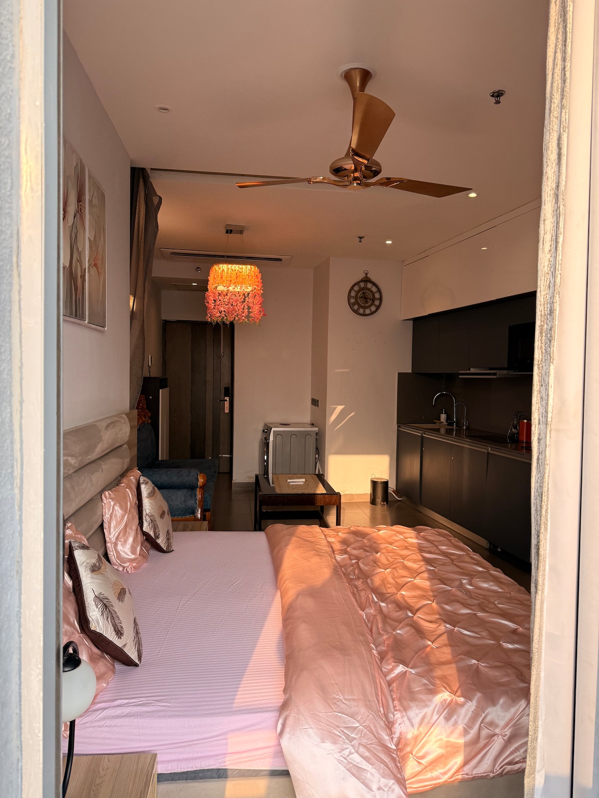 Introducing our exquisite luxury studio apartment: Nestled in the heart of the city, this opulent studio boasts modern elegance and unparalleled comfort. The open-concept design invites you into a spacious haven, bathed in natural light from the large windows that offer breathtaking city views. This apartment is on the 41st floor in one of the tallest sky scraper in Delhi - NCR. The apartment has a river facing view from the balcony!!