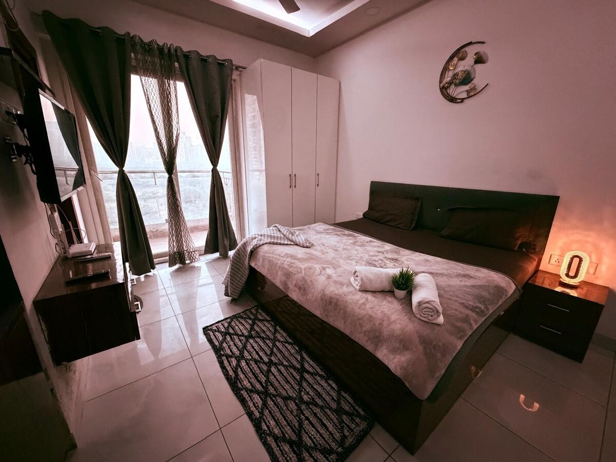 Introducing our exquisite luxury studio apartment: Nestled in the heart of the city, this opulent studio boasts modern elegance and unparalleled comfort. The open-concept design invites you into a spacious haven, bathed in natural light from the large windows that offer breathtaking city views. This apartment is on the 41st floor in one of the tallest sky scraper in Delhi - NCR. The apartment has a river facing view from the balcony!!