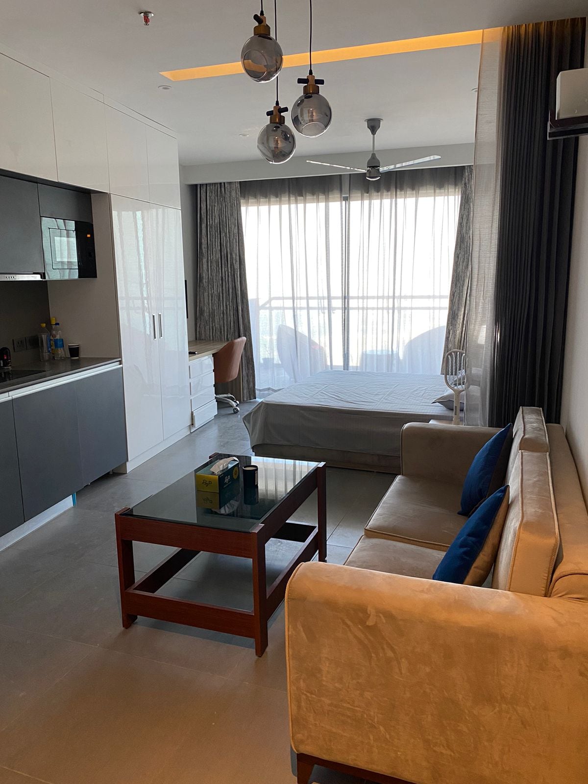 Introducing our exquisite luxury studio apartment: Nestled in the heart of the city, this opulent studio boasts modern elegance and unparalleled comfort. The open-concept design invites you into a spacious haven, bathed in natural light from the large windows that offer breathtaking city views. This apartment is on the 41st floor in one of the tallest sky scraper in Delhi - NCR. The apartment has a river facing view from the balcony!!
