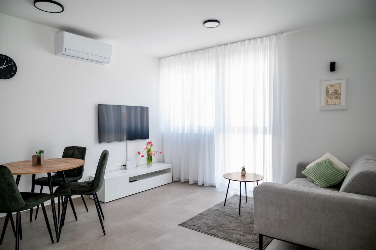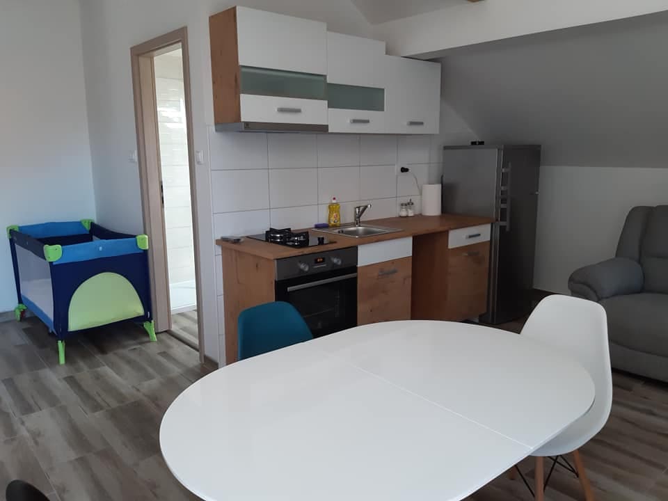 It is a brand new modern apartment, warm and comfortable with large living room (air conditioning), TV, kitchen, bedroom, and bathroom. It also has free parking and free Wi-Fi. Quiet street in vicinity of children playground. Apartment is made for two persons but it can also accommodate one small child up to three years of age ().