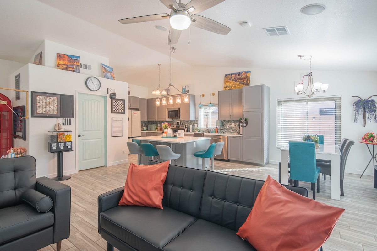 Welcome to Superstitious@Superstition Springs! Located just 12 mins from historic downtown Gilbert, this home offers the perfect blend of relaxation and entertainment. You'll have easy access to a charming array of restaurants, allowing you to savor delicious local cuisine. Golf enthusiasts will appreciate the nearby golfing options for a day on the greens. Combine these amenities with our heated pool and game-filled property for an unforgettable stay in Arizona. Book now to experience the best!
