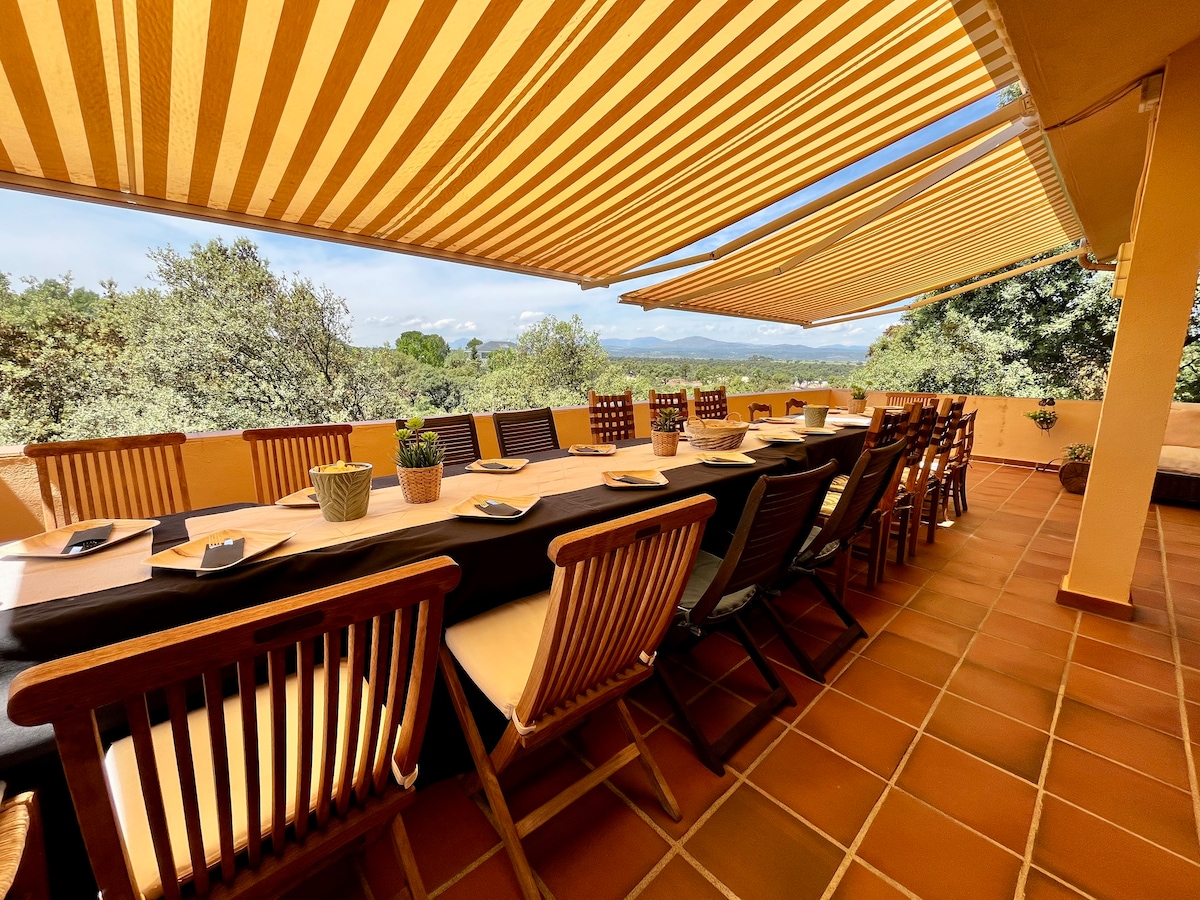 In the mountains 30km from Madrid we rent out our villa with more than 400 m2 of living space and a garden with pool. That garden is 4000 m2 and has more than 100 trees. From the house and outside terrace you have a fantastic view and at the pool there is lounge area. The pool is 13m long en 6m wide. The villa has been recently fully renovated and everything is new. The climate is nice, warm and dry.