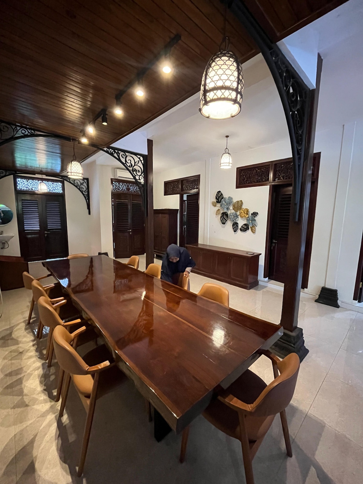 Experience Javanese Elegance at Ndalem Ringgitan Solo! More than just a stay, Ndalem Ringgitan offers a true Javanese living experience. Wake up to birdsong, unwind in the outdoor pendopo, and enjoy meals in a spacious dining area. Need to pray? Our cozy musholla is ready. With 5 rooms, including 2 assistant rooms, ample parking, and 24-hour security, we ensure comfort for all. Just 7 minutes from the airport and 5 minutes to the hospital. Book now for an unforgettable stay.