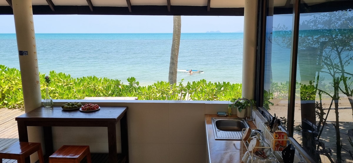 Potential for noise starting from April ‘26 as the villa next door will start renovations. By booking, guests accept construction noise between 8:00 AM – 6:00 PM daily. Pricing has been reduced to reflect this. A rare opportunity to rent this beach villa monthly, typically a short stay rental. Bang Por Beach views from your porch and pool. Walking to local & international restaurants. Ideal for remote work, with flexible or off-hour schedules. Free cleaning, WiFi, Netflix, SUP, kayak & pool.