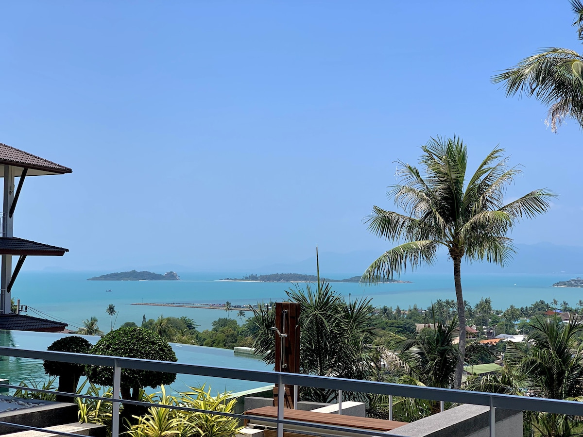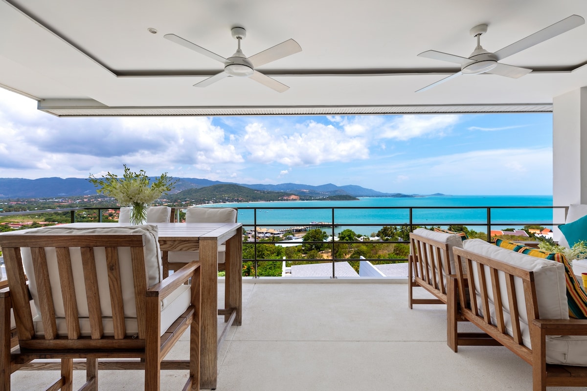 Experience luxury living in this breathtaking 2-bedroom apartment in the heart of Plai Laem, Koh Samui. Wake up to panoramic views of the ocean and the lush green hills from yourBalcony. This modern and spacious apartment offers an open-plan living area, a fully equipped kitchen, and a cozy lounge with a large flat-screen TV for your entertainment. Book now and make unforgettable memories in this island paradise!