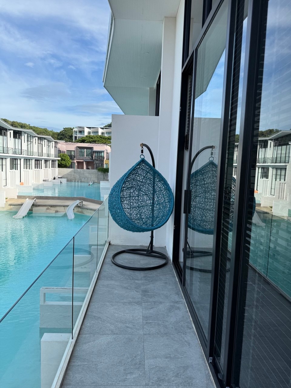 Want to relax in an apartment by the sea with swimming pool and tennis court? Fully furnished apartment in Koh Samui near the sea. What do you get: 1. Designer renovation 2. Sauna, gym, swimming pool, tennis court, basketball court 3. High-speed Wi-Fi 4. Water included 5. Washing machine 6. Secured parking lot 7. Restaurants within walking distance What's inside: - equipped kitchen - four-poster bed with blackout curtains - work area with office chair - lounge area - balcony