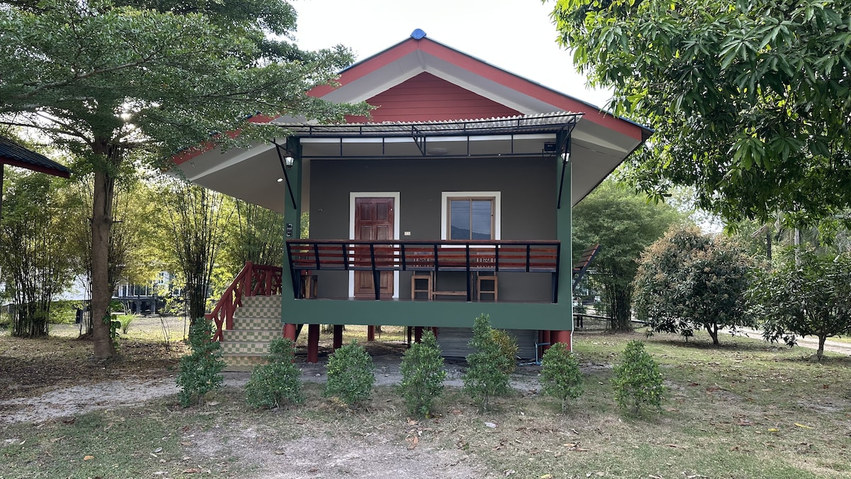 Authentic Thai wooden house on Coconut Lane In heart Srithanu, recently renovated. Private area with a lush garden and century-old trees. A lotus pond with fish lies beneath the house. Equipped with AC, kitchen, Thai-style bathroom, balcony and chill-out space with barbecue. Pet-friendly. A unique spot in Srithanu with abundant greenery and the shade of an old tropical garden. Please note: As a traditional wooden Thai house, it offers a rustic experience with some natural imperfections 😌🙏🏼