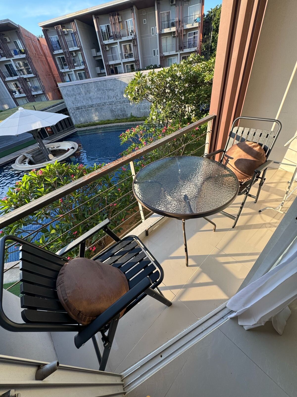 Fresh 55sqm 1-Bed (NOT Studio!). 💤Sleeps 3: King Bed (Ortho) + Leather Sofa. Premium 100% Cotton Linens. ⚡Tech: Front-Load Washer/Dryer, Dishwasher, 2 Huge Smart TVs, 2 ACs. 🏃Active: Gym, Tennis, Streetball, 2 Pools, famous Mountain Hiking Trail. 📍Loc: 1 min to Sea Shore (SUP spot) & Jack’s (Stylish Cafe). Walk to Fisherman’s. ✨View: Big Balcony w/ Mountain View. Soundproof windows. 🚀Fast Fiber WiFi. 🅿️Free Parking. 👮24/7 Security. 🌴Luxury Resort. Quiet. No Plane Noise! 🔇✈️ Top Spot! 🏆