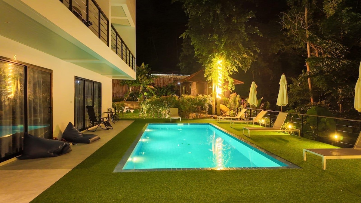 A little slice of heaven in the jungles of Koh Phangan, away from stress, and close to everything you might need. Inside your new home, you’ll find two bedrooms with a private bathroom, air-conditioning, and high-speed internet at 300 Mbps. Outside, there is a swimming pool, a beautiful garden, and easy access to the rest of the island. This tropical hideaway comes with no stress, a free shuttle service to Thong Sala City, parking, all-inclusive bills, and kind reviews from other travelers.