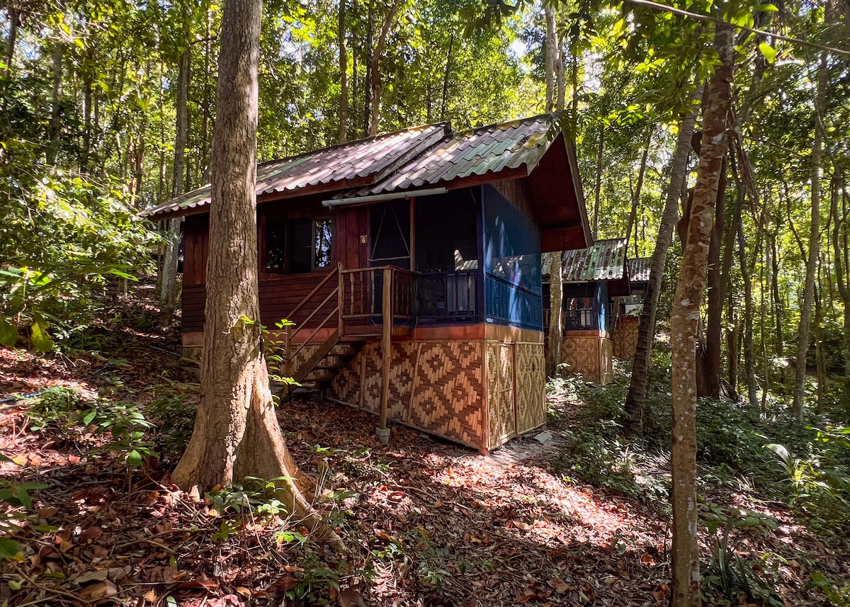 Eco Jungle Bungalows overlooking Haad Salad, nestled high in the mountain forest, immersed in the sounds of birds, wind, and pure island nature. Each bungalow includes a double bed, private bathroom with hot shower, mosquito net, balcony, and hammock. Naturally cooled by jungle shade and fresh breezes (no A/C). Just 3 minutes from Haad Yao and Haad Salad beaches. Guests also enjoy free access to our world-renowned Ecstatic Dance in the Pyramid Shala.
