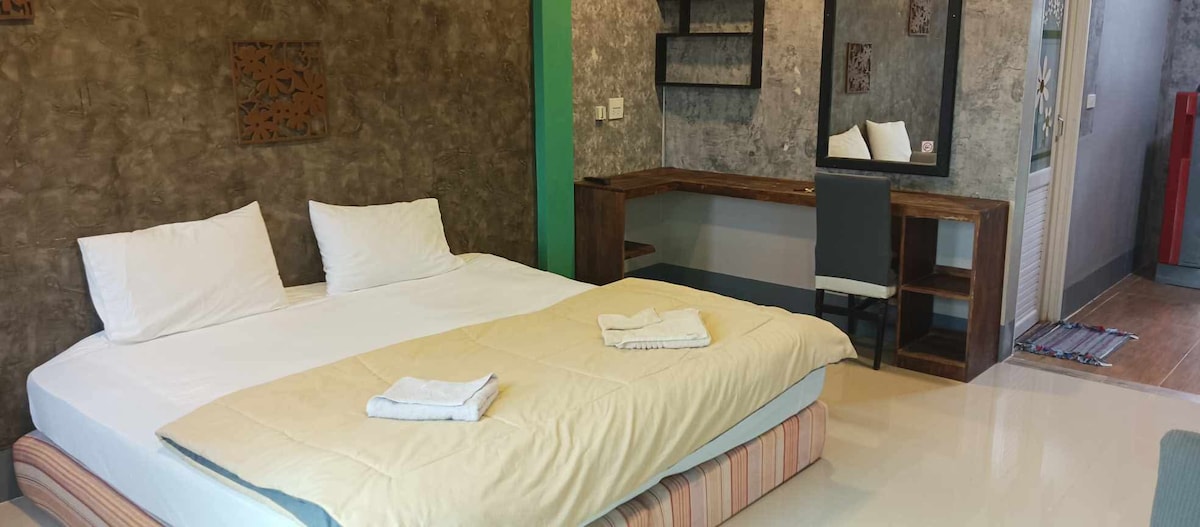 We are in calm & natural area and close to the city of Surat Thani just 7-8 minutes drive away. Public transport likes Taxi, Tuk Tuk, Airport Shuttle bus are available in the area. All rooms are with free wifi, TV, air conditioning, fridge, hot water. You are safe with 30 CCTVs, and 24 hrs. security guard and feel comfortable with housekeepers, washing machine, elevator, and nearby convenient store. Our place suits for solo adventurers, business travelers, families (with kids), and big groups.