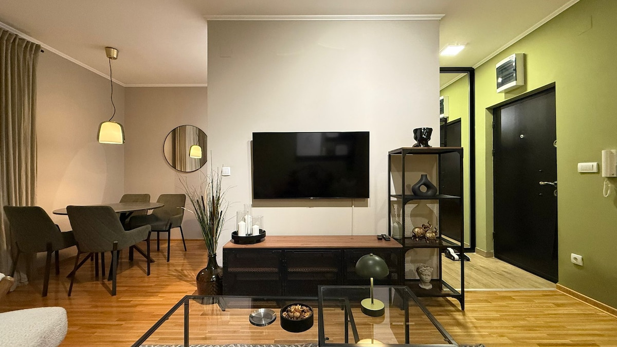 Modern, cozy 45m² apartment in New Belgrade — just a 10-minute walk to the Sava River promenade and close to shops, cafes, and public transport. Bright and quiet, with a private balcony, fast Wi-Fi, Smart TV, and fully equipped kitchen. Only 10 min to the city center by car and 10 km from the airport. Free street parking and flexible 24/7 self check-in. Ideal for couples, solo travelers, and business guests.