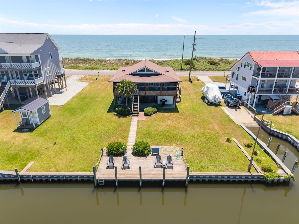 Coastal luxury at its finest. This home is truly remarkable and one of a kind.Get lost in a sea of tranquility in this spectacular and peaceful private waterfront estate. Guests will love the magnificent views of Topsail Sound, the open floor plan and outdoor living spaces that make this home the perfect place to spend quality time together. Home is filled with coastal charm and decorated exquisitely. Truly the best of both worlds with sound out your back door and ocean just across the street.