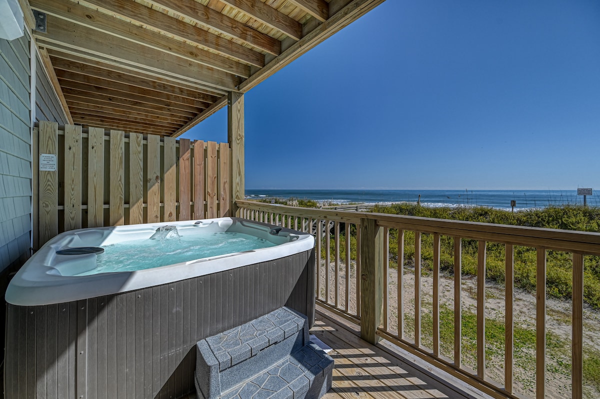 Escape to Paradise on Topsail Island! -Come stay at our charming beach house, just steps from the sand and surf. Whether you're sipping coffee on the deck or watching the sun rise over the waves, you’ll love the unbeatable ocean view and perfect location -Direct beach access – no roads to cross -Stunning, uninterrupted ocean views - Private outdoor spa as well as all linens provided -Walking distance to downtown shops, restaurants and the pier -Family-friendly and full of nearby activities