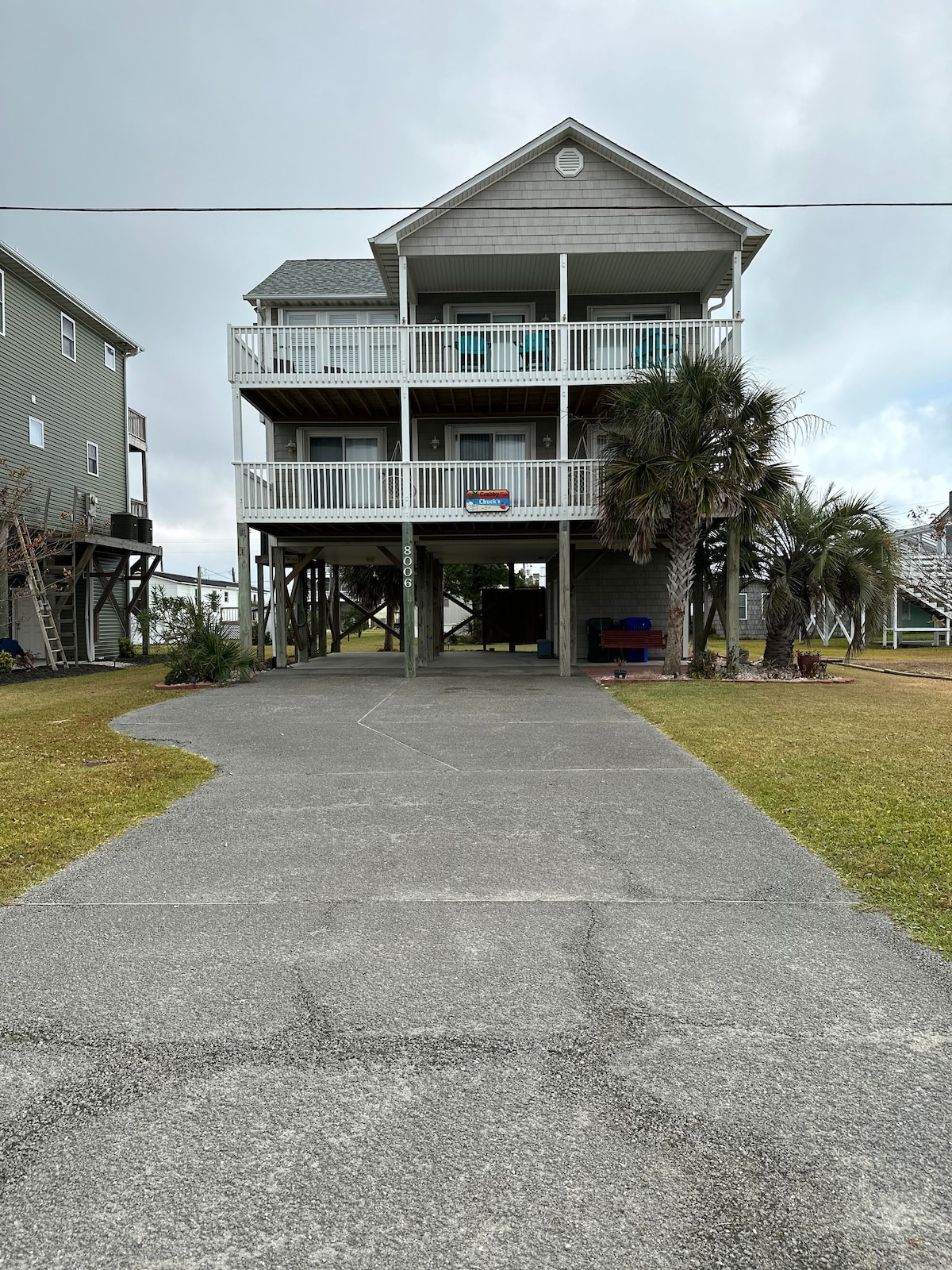 The Tip-Sea Turtle is a stunning 4BR, 3BA pet friendly beach home with 4 decks offering ocean and sound views on every level, a reverse floor plan, and two master suites. Perfect for families or groups. Located in the heart of Surf City, just a short walk to the beach, bars, and restaurants. Enjoy the 6-seater golf cart (extra fee), grilling, cornhole, and relaxing on spacious porches. The perfect coastal escape with room for everyone!