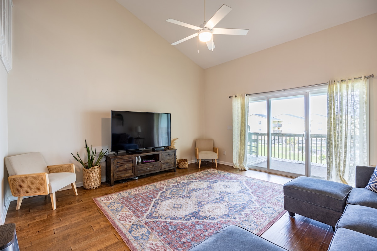 Beautiful beachfront condo with a fully stocked updated kitchen, glass walk in shower, LVP flooring, neutral paint. Gated entrance, private seasonal pool. We are right on the beach. Relax as you sit on the covered patio, enjoying the sound & view of the ocean, watch gorgeous sunrises & sunsets, dolphins. Go fishing or shark teeth hunting! We love to host and entertain our family & friends, so we treat our guests to the same! Minutes from Surf City Ocean Pier, local shops & restaurants.