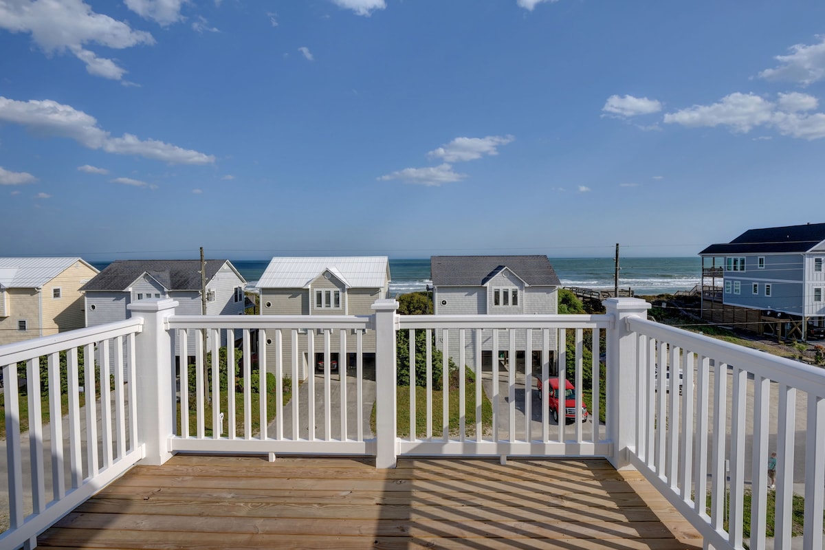 Escape to Paradise on Topsail Island! -Come stay at our charming beach house, just steps from the sand and surf. Whether you're sipping coffee on the deck or watching the sun rise over the waves, you’ll love the unbeatable ocean view and perfect location -Direct beach access – no roads to cross -Stunning, uninterrupted ocean views - Private outdoor spa as well as all linens provided -Walking distance to downtown shops, restaurants and the pier -Family-friendly and full of nearby activities