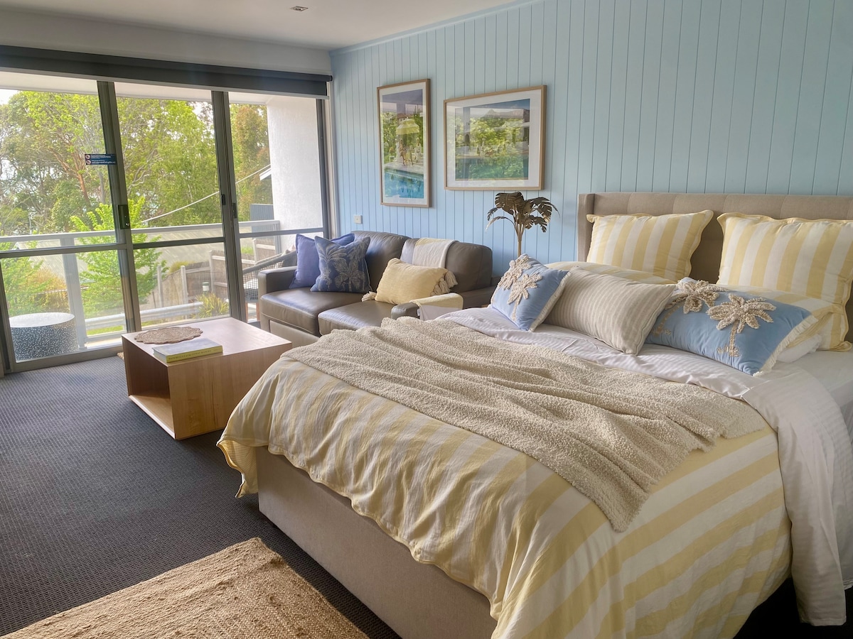 3min walk to the beach, right on The Esplanade. This luxury king studio apartment is ideal for a couple but can sleep up to 4 guests. Full use of resort facilities, centrally located on The Esplanade, Torquay. Minutes walk from cafes, restaurants, breweries, shops, surf outlets and more. Resort includes indoor and outdoor heated pool, spa, gym, tennis courts, BBQ area and a playground. BYO Beach Towel