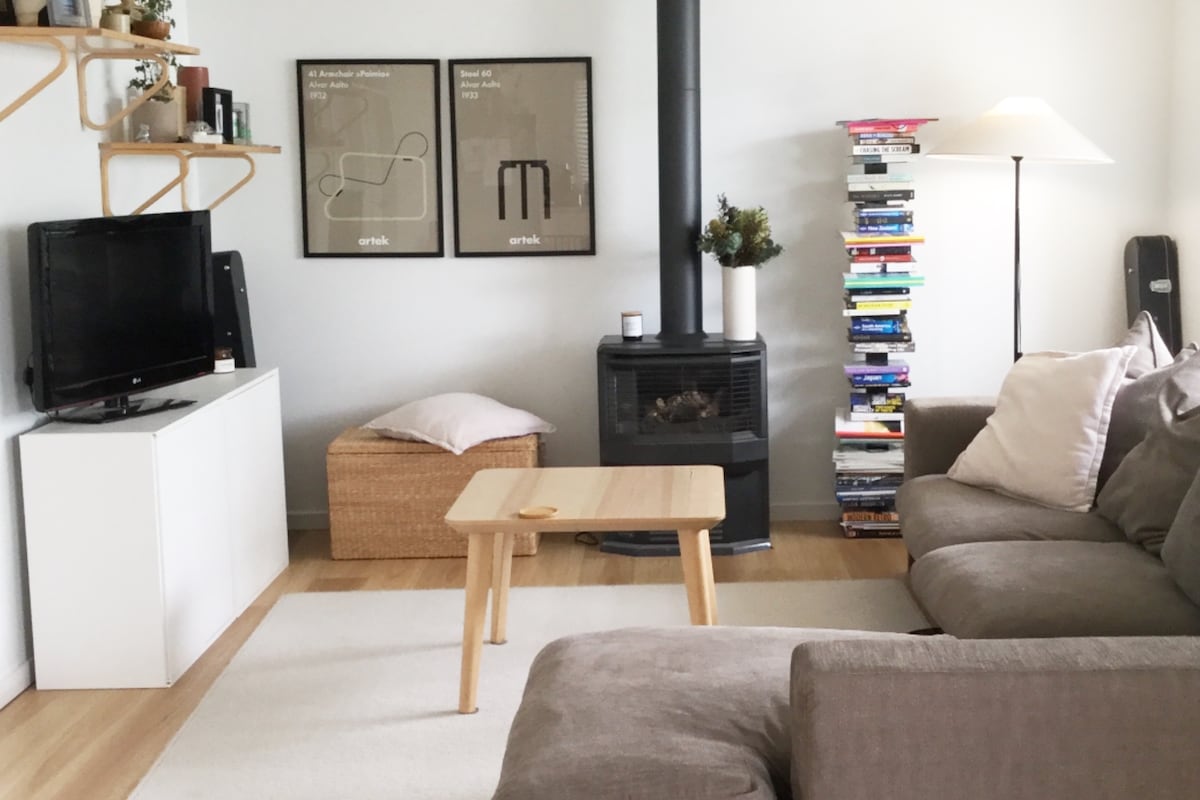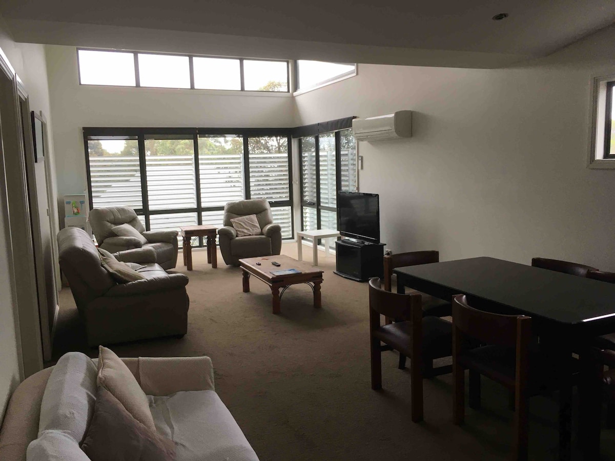The unit has vaulted ceilings and hardwood floors, a complete kitchen with dishwasher. In winter the wood fire place keeps the place cosy. In summer the balcony is a favorite place for breakfast, watching numerous native birds. Within a few minutes drive you will reach the center of Geelong, Deakin Uni, and the 3 major hospitals of Geelong. It's an easy drive to beautiful beaches, including the Great Ocean Road. To keep the building sustainable, there is solar hot water & power & rain tanks.
