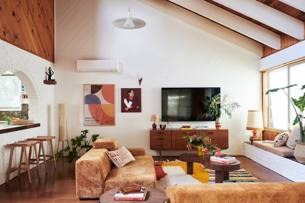 Located just 100m from Anglesea Main Beach, our home is perfectly located for your coastal getaway. This hidden gem is tucked away with ample outdoor space to relax in privacy, and also just a minutes walk to great coffee. The house is made up of 3 bedrooms (2 queens + 1 King beds). Filled with art, books, a big comfy couch and fireplace for and wood fired oven on the new large private deck. We are family friendly, but ask that you respect all of the pieces we have left there for your to enjoy.