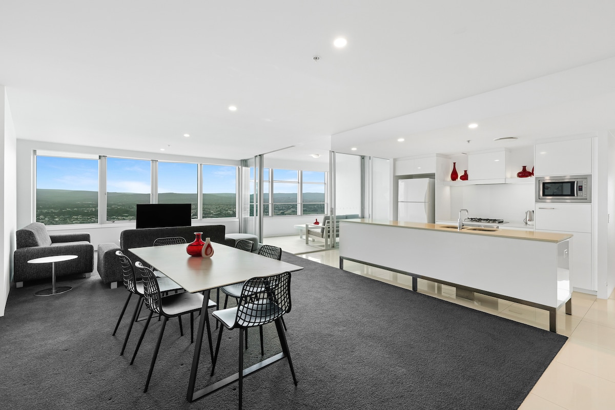 Enjoy a luxury stay at our stunning Circle On Cavil apartment. Located on level 41 with amazing 180 degree views across the ocean and hinterland. Centrally located to all shops, beaches & Cavil Avenue. Relax and enjoy the best views on your own private balcony. Full kitchen, luxury spa bath, the living room is fitted with King Furniture. Both bedrooms fitted with quality pillow top mattresses. Walk to the beach No car needed - catch a tram to Broadbeach, or a bus to all the theme parks.