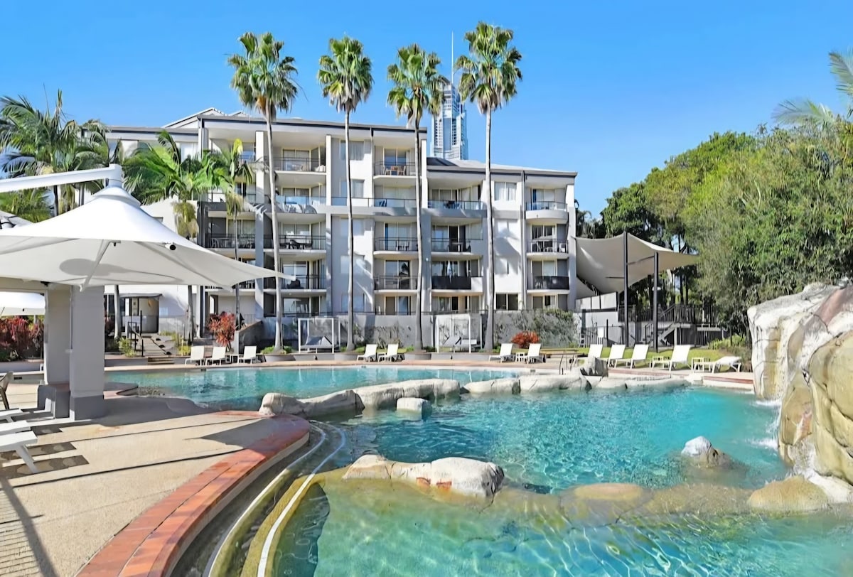 Beautiful Paradise Island Resort, this 1 bedroom apartment has newly renovated kitchen, new furniture, a balcony with a view of the pool and the lagoon and a free parking spot. Short 5 minute walk to Surfers Paradise, the beach, and the light rail while still offering a peaceful setting being separated from the noise by a canal. 🚫 No Schoolies or School Leavers 🚭 This is a strictly non-smoking property. Smoking is not permitted inside the apartment or anywhere on the premise
